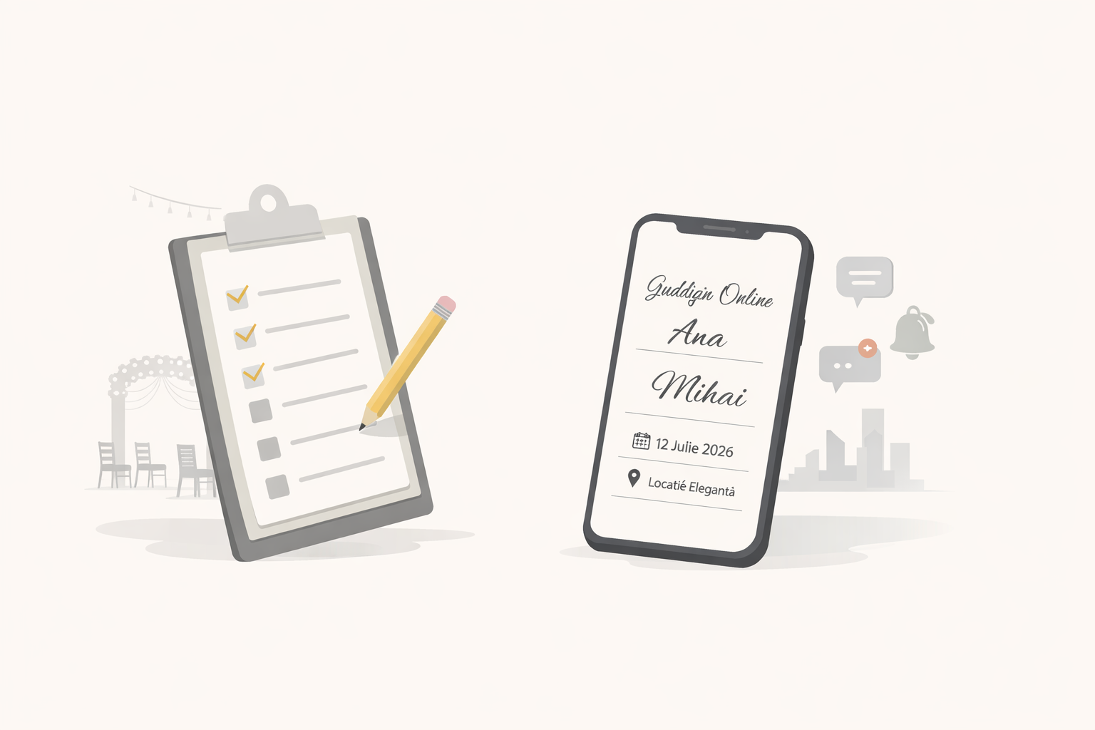 Organizezi un majorat sau un eveniment corporate? Află de ce invitațiile digitale sunt soluția perfectă pentru orice petrecere: RSVP rapid, locație Google Maps și design modern.